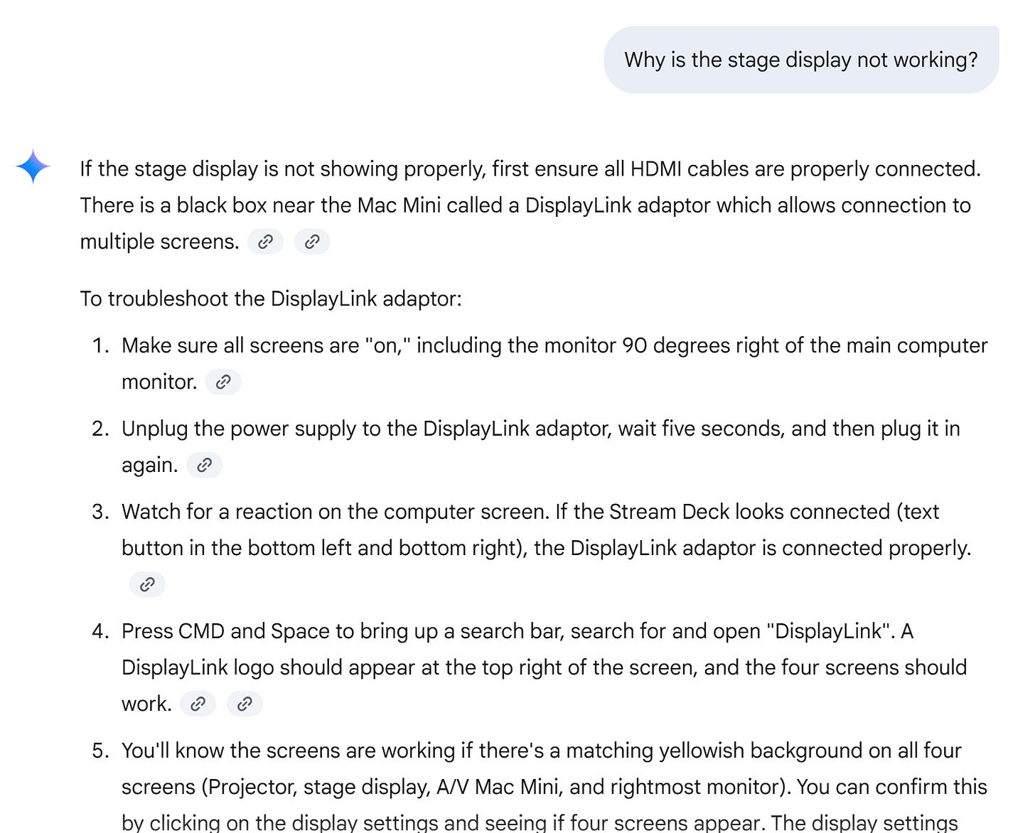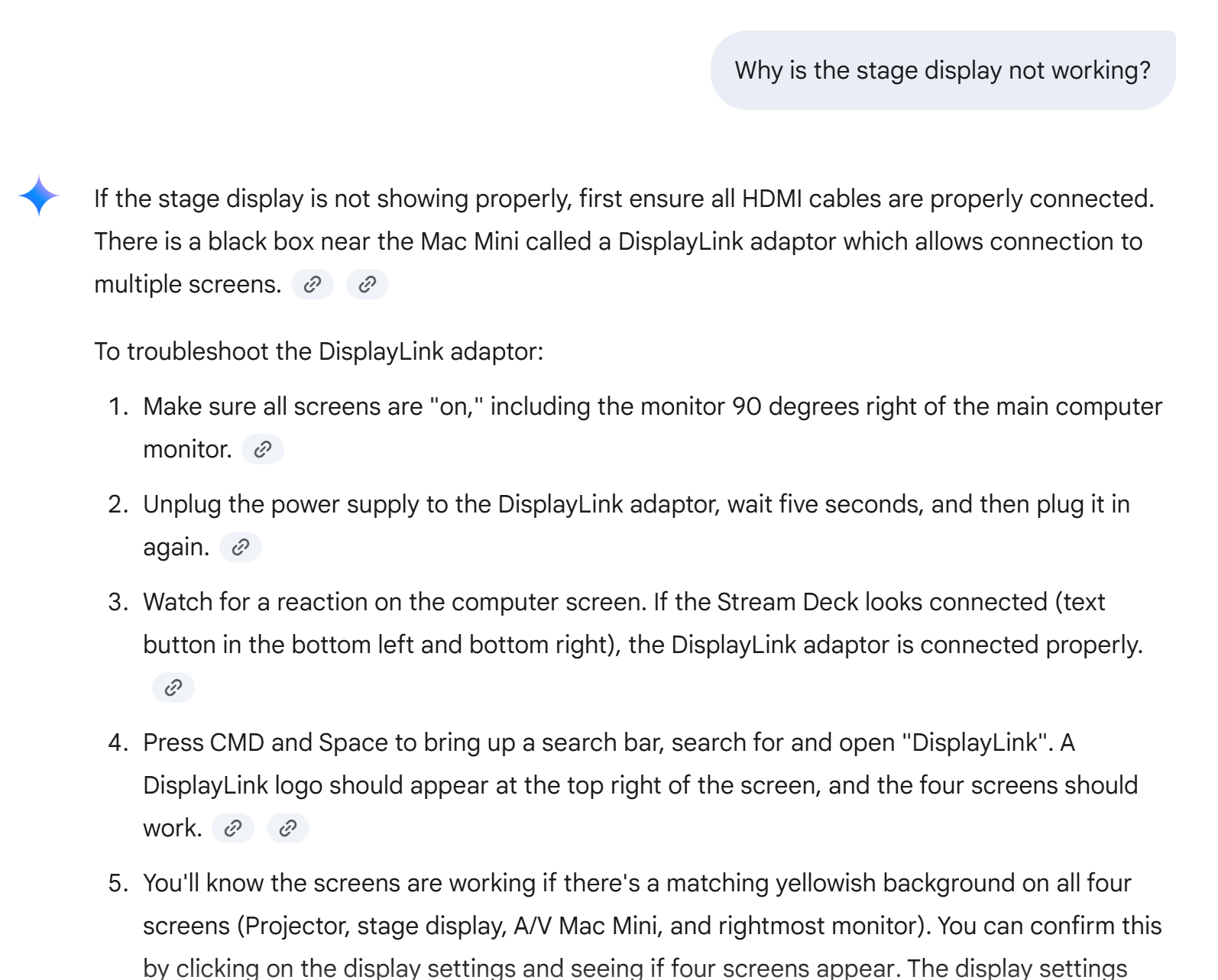 I've created a free chatbot system for our setup crew that will allow us to ask any questions about setup quickly and easily while I'm away.