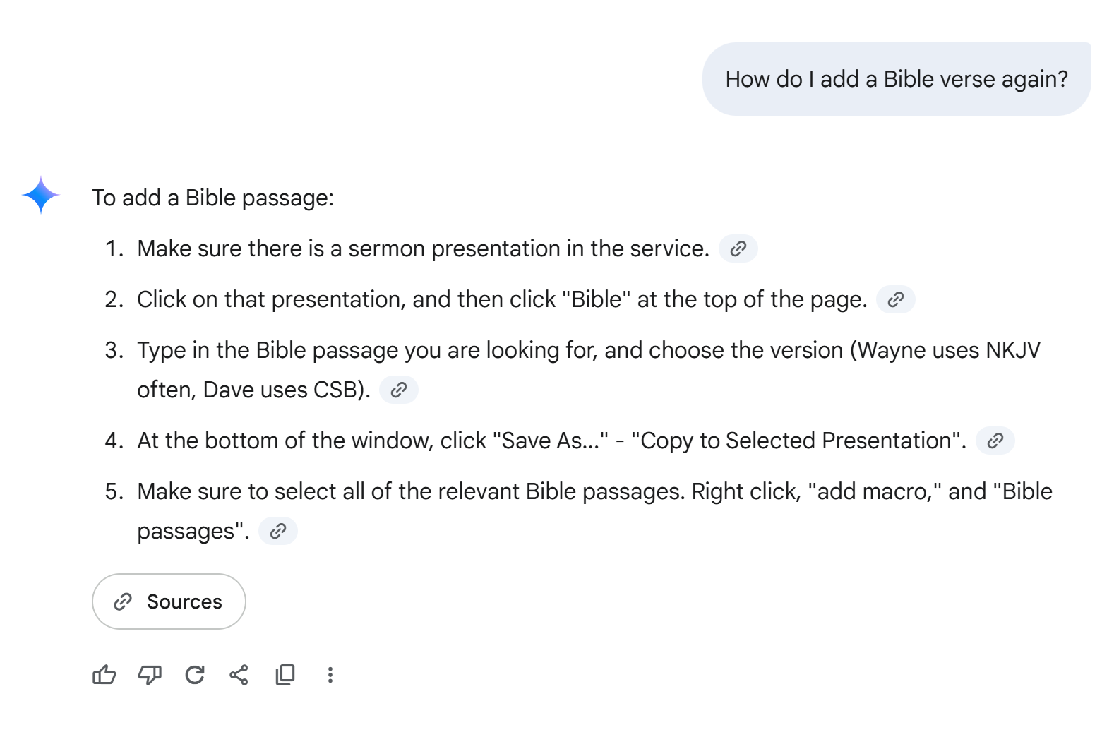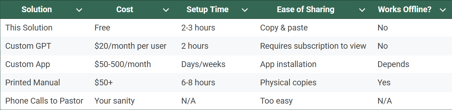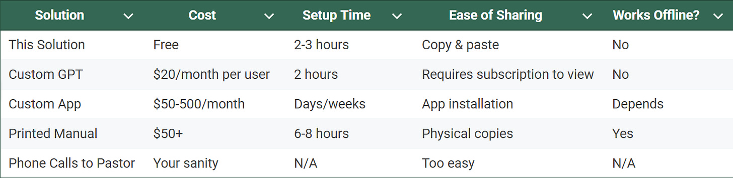 Cool, right? Imagine being able to implement this across a variety of ministries? In time, of course (probably even by the end of the year), this process will be even simpler. Google Gemini Gems and ChatGPT's GPTs will make this even simpler. But right now, this is a great solution.